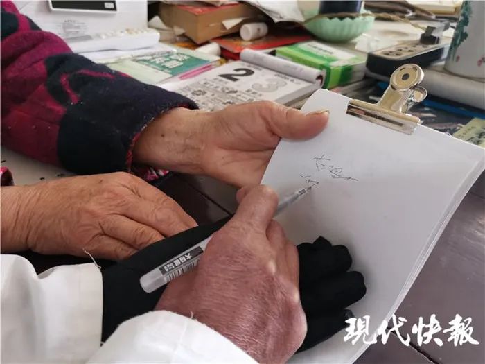 張又今合起雙手寫藥方。圖片來源:現(xiàn)代快報