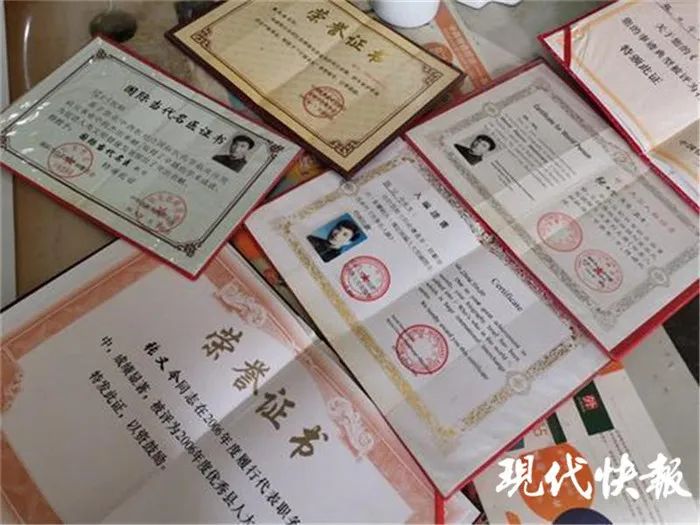 張又今獲得的榮譽證書與獎項。圖片來源:現(xiàn)代快報