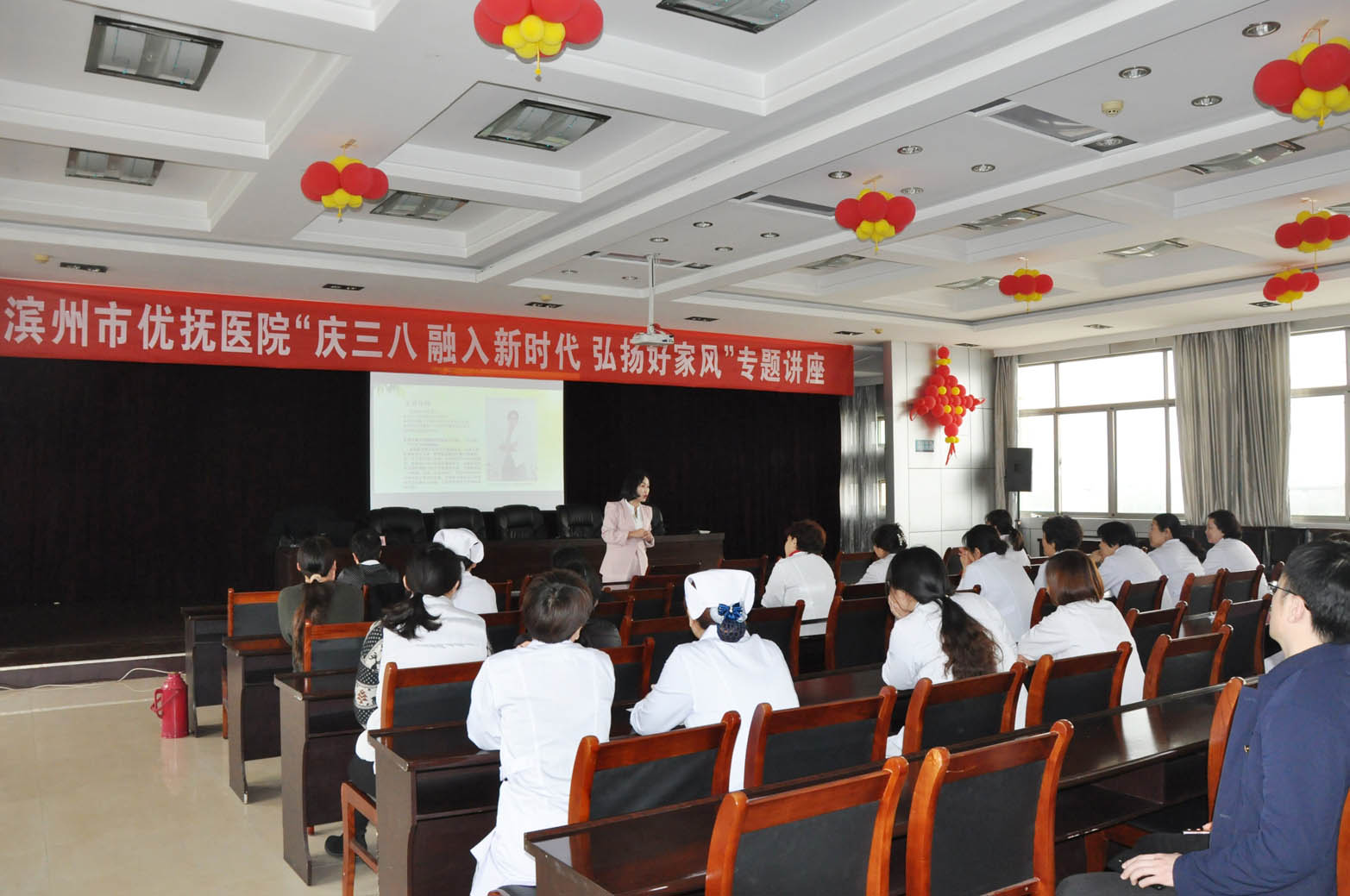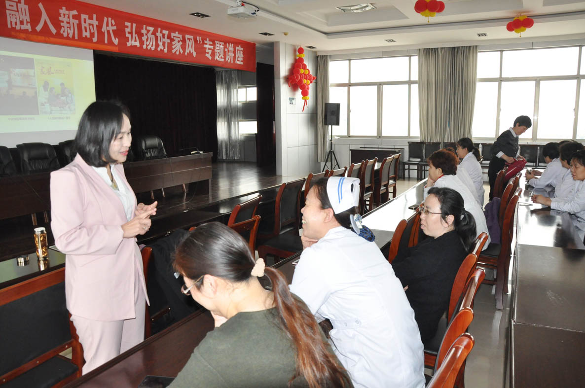 家風(fēng)是中華五千多年傳統(tǒng)文化的積淀和傳承,是家庭留給每個成員的寶貴精神財(cái)富。在第108個國際勞動?jì)D女節(jié)來臨之際,為使廣大職工樹立正確的家庭教育觀念,更加注重家教家風(fēng)、培育家國情懷,充分發(fā)揮廣大女職工在以良好家風(fēng)引領(lǐng)社會文明新風(fēng)中的重要作用,3月7日下午,我院工會舉辦了 “融入新時(shí)代,弘揚(yáng)好家風(fēng)”專題講座。市民政局黨組成員、市雙擁辦副主任、市優(yōu)撫醫(yī)院院長韋安祥,市優(yōu)撫醫(yī)院黨總支書記周其東同志出席了講座。