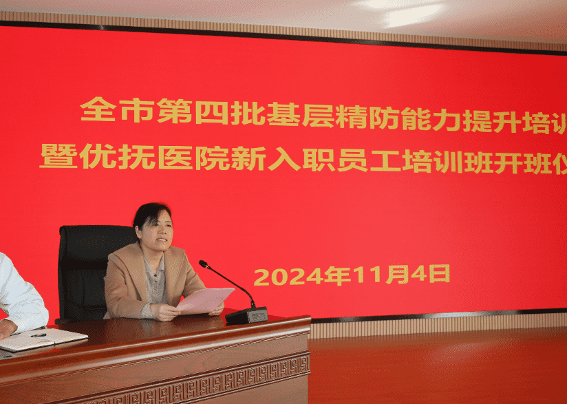 11月4日,濱州市第四批基層精防能力提升培訓(xùn)暨優(yōu)撫醫(yī)院新入職員工培訓(xùn)在我院學(xué)術(shù)交流報告廳開班。市優(yōu)撫醫(yī)院副院長延英芹、相關(guān)職能科室負(fù)責(zé)人、培訓(xùn)班授課教師,以及來自各縣區(qū)鄉(xiāng)鎮(zhèn)衛(wèi)生院和精神專科醫(yī)院的參培學(xué)員和我院新入職員工參加。