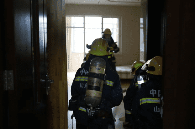 培訓(xùn)結(jié)束后,開(kāi)展了消防模擬實(shí)戰(zhàn)演練。演練以濱州市優(yōu)撫醫(yī)院療養(yǎng)樓3層304房間房間電路起火為模擬場(chǎng)景,護(hù)理員發(fā)現(xiàn)火情后,迅速觸發(fā)警報(bào)、切斷電源并嘗試初期撲救,隨后報(bào)告上級(jí)啟動(dòng)應(yīng)急預(yù)案,分組開(kāi)展行動(dòng),引導(dǎo)老人有序撤離,并撥打微型消防站電話和119報(bào)警電話請(qǐng)求支援。醫(yī)院微型消防站消防員抵達(dá)現(xiàn)場(chǎng)后,利用消防栓水槍壓制火勢(shì),延緩蔓延。同時(shí),特勤消防救援站、市中消防救援站派出偵察搜救、滅火冷卻、舉高噴射等5輛救援車趕赴現(xiàn)場(chǎng),精準(zhǔn)定位火源,高效撲滅明火,并對(duì)“受困人員”展開(kāi)救援,火勢(shì)得到有效控制。療養(yǎng)樓工作人員立即進(jìn)行現(xiàn)場(chǎng)清理,并配合消防部門進(jìn)行火災(zāi)原因調(diào)查。