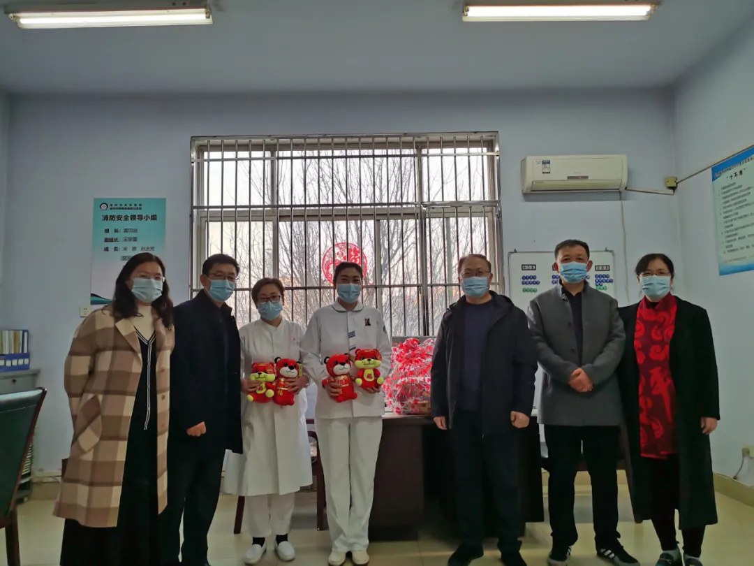1月31日,農(nóng)歷除夕。濱州市優(yōu)撫醫(yī)院黨總支成員看望慰問堅守一線的工作人員,送去新春祝福和親切關(guān)懷。院黨總支書記李學(xué)軍,院長牛希國,副院長房崇村、延英芹、張曉華參加。