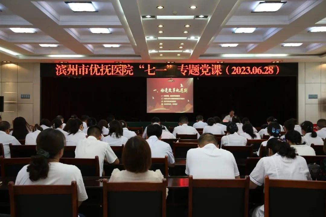 6月28日上午,濱州市優(yōu)撫醫(yī)院舉辦“七一”專題黨課活動,深入學習貫徹黨的二十大精神,牢牢把握習近平新時代中國特色社會主義思想主題教育總要求,進一步激發(fā)黨組織的生命力,讓廣大黨員感悟思想偉力、厚植愛黨情懷,共同慶祝黨的102歲生日。濱州市優(yōu)撫醫(yī)院班子成員、全體黨員干部參加。
