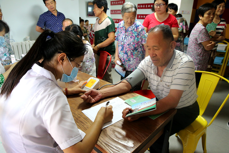 醫(yī)護(hù)人員給老年人測(cè)血壓