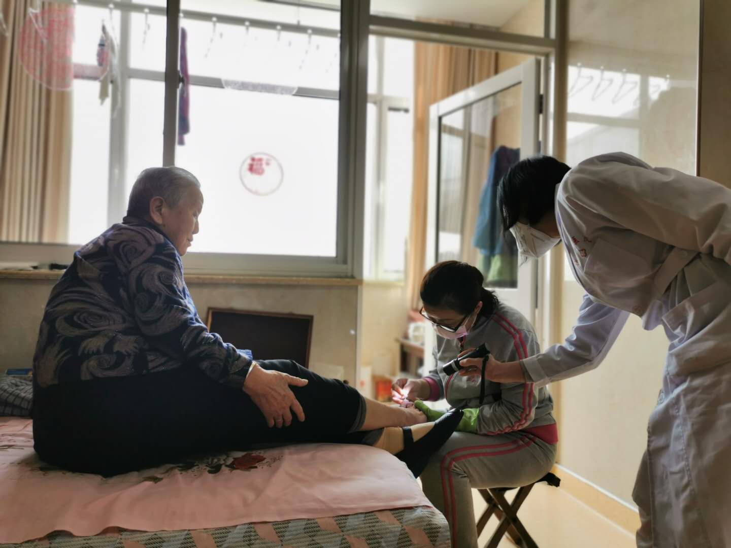 今天盛奶奶告訴我們自己腳疼,經(jīng)過檢查,老人的腳得了甲溝炎,護(hù)理員張大姐就給老人用白醋泡腳,軟化趾甲,泡腳半小時后又為老人修剪畸形趾甲,減輕老人疼痛。并囑咐其他護(hù)理員要經(jīng)常為老人泡腳,勤修剪趾甲,這樣就會防止甲溝炎再復(fù)發(fā)了。