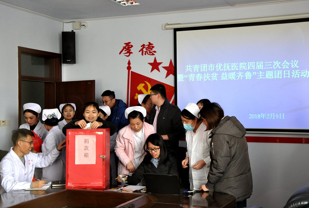會(huì)后醫(yī)院團(tuán)委組織開(kāi)展了青春扶貧 益暖齊魯”主題團(tuán)日活動(dòng)。20余名團(tuán)員現(xiàn)場(chǎng)踴躍捐款,共為貧困孤殘兒童捐款1000余元。