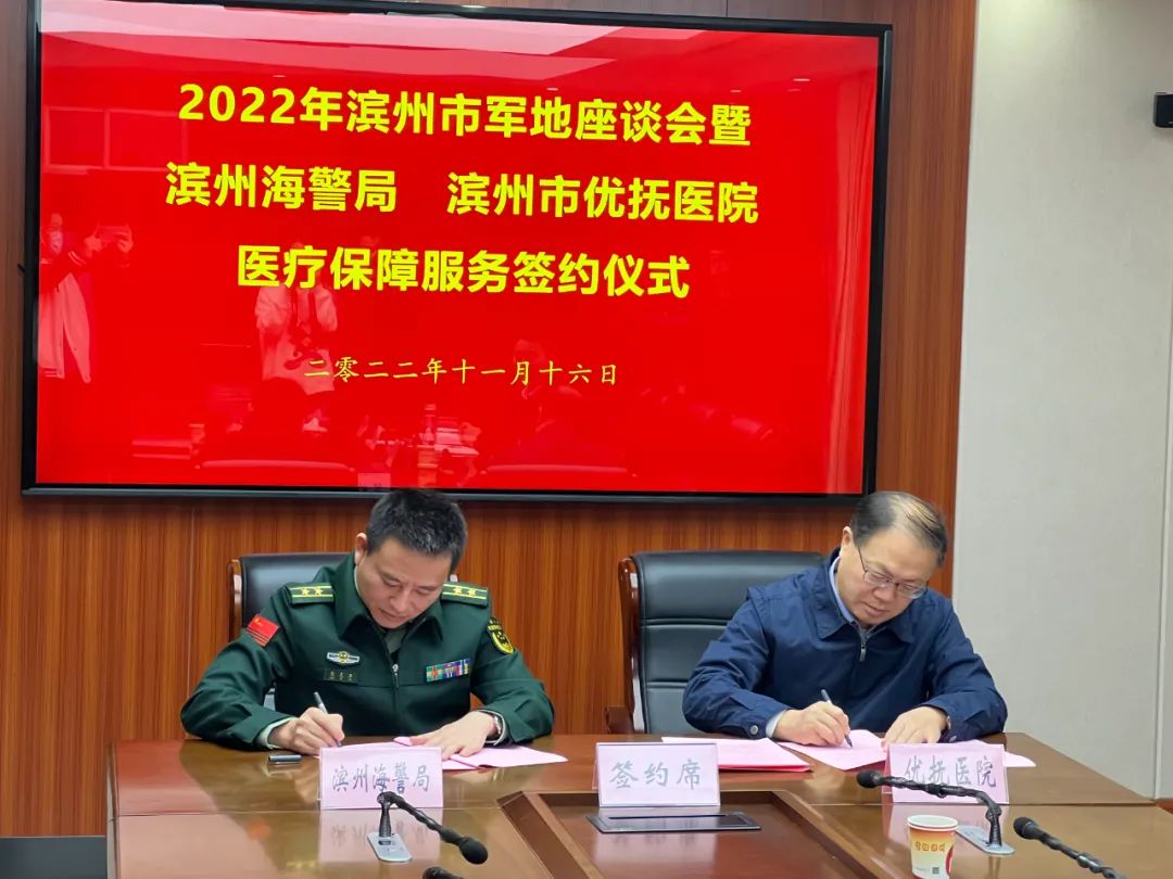 11月16日上午,濱州市優(yōu)撫醫(yī)院與濱州海警局簽訂醫(yī)療保障服務(wù)協(xié)議。濱州海警局黨委書記陳克玉,濱州市退役軍人事務(wù)局黨組成員、副局長張建軍,濱州市優(yōu)撫醫(yī)院黨總支書記李學軍等出席簽約儀式。