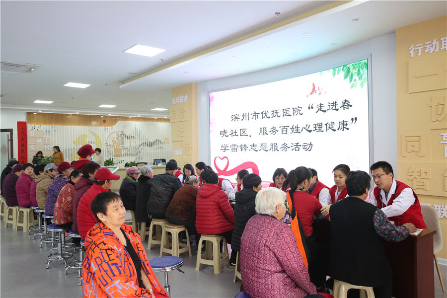 為繼承和弘揚(yáng)雷鋒精神,關(guān)愛(ài)老年人身心健康,結(jié)合我院2019年度“每月一主題” 活動(dòng)安排,在第56個(gè)學(xué)雷鋒紀(jì)念日來(lái)臨之際,我院團(tuán)委組織廣大青年醫(yī)護(hù)志愿者到濱城區(qū)春曉社區(qū)開(kāi)展了“進(jìn)社區(qū)?服務(wù)百姓心理健康”學(xué)雷鋒志愿服務(wù)活動(dòng)。