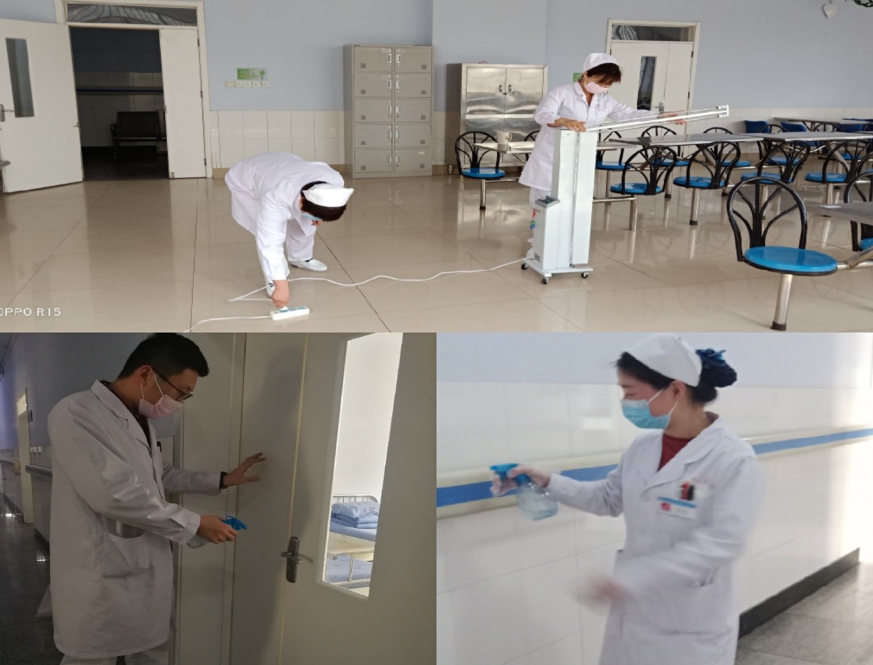 科室全體人員除做好日常醫(yī)療護(hù)理工作外,堅(jiān)決做好防控工作,配比84消毒液及酒精等對病房門把手、櫥柜、地面、墻壁等位置噴灑消毒,每個房間每日進(jìn)行紫外線等消毒。
