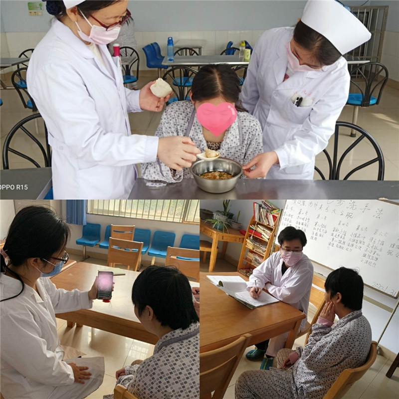 由于疫情家人不能前來探視,醫(yī)護(hù)人員了解每位病人情況,擔(dān)任起“家屬”角色,為有情緒波動的患者喂飯喂藥,同時積極開展“一對一”心理疏導(dǎo),并利用電話、視頻等多種方式讓患者與家屬線上溝通。