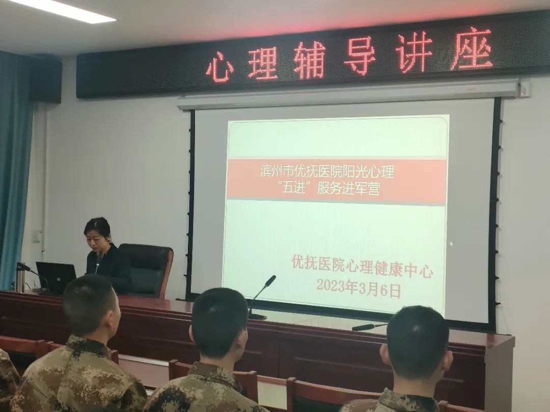 3月6日,濱州市優(yōu)撫醫(yī)院陽(yáng)光心理“五進(jìn)”團(tuán)隊(duì)走進(jìn)惠民縣,為2023年春季參加役前教育的預(yù)定新兵開(kāi)展心理健康專題講座,科普心理健康知識(shí),提高預(yù)定新兵身心素質(zhì),助力“準(zhǔn)新兵”輕裝入伍。
