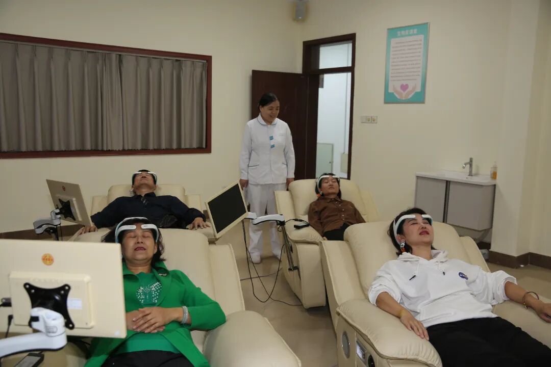在心理健康中心,我院工作人員向社區(qū)居民介紹了心理評估室、宣泄解壓室、生物反饋室、重復(fù)經(jīng)顱磁室等功能室,根據(jù)不同需求,為大家推薦了心理測評、心理宣泄、VR放松減壓、經(jīng)顱磁及生物反饋等個性化項目進行體驗,并針對偶爾有失眠、焦慮、壓力大等問題困擾的亞健康人群進行專業(yè)健康指導(dǎo),讓大家在輕松、愉快的氛圍中調(diào)節(jié)情緒,放松身心。