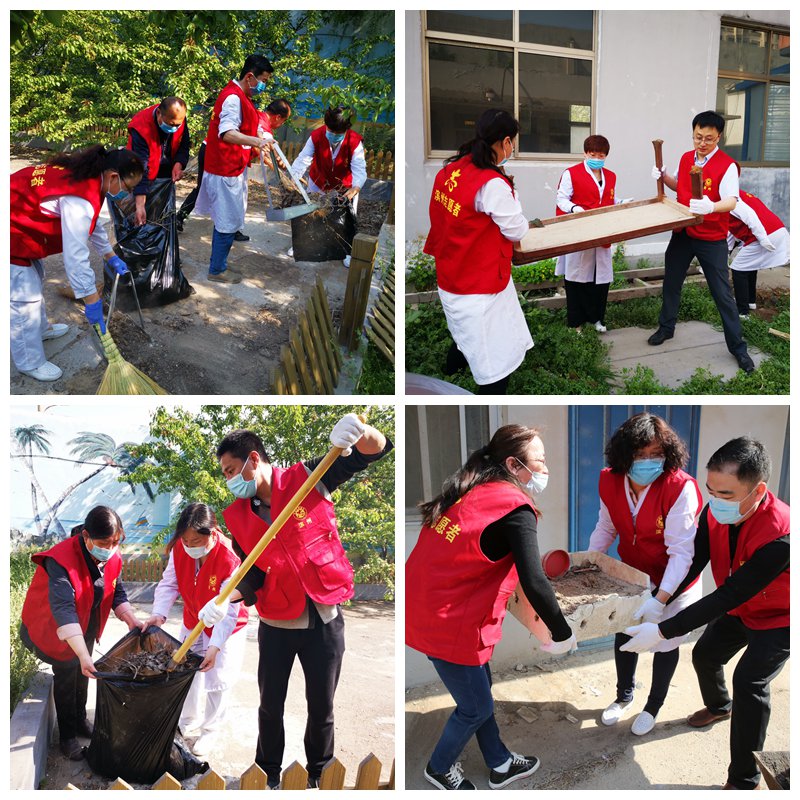廣大干部職工拿著掃帚、笤帚、鐵鍬等清潔工具,清掃院區(qū)路面、撿拾綠化帶內(nèi)垃圾、清除廢舊物品及雜草、清理衛(wèi)生死角,大家充分發(fā)揚(yáng)不怕苦、不怕累的勞動(dòng)精神,干勁十足,齊心協(xié)力,院內(nèi)呈現(xiàn)出一派熱火朝天的勞動(dòng)場面。
