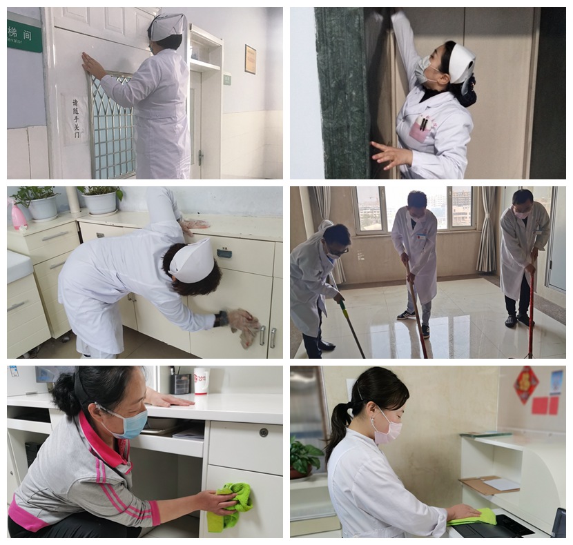 實(shí)施封閉管理的病區(qū)及養(yǎng)老中心也積極參與此次活動(dòng),在各自工作區(qū)域開展了衛(wèi)生大掃除、物品收納整理、廢品廢物清理等活動(dòng)。