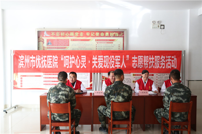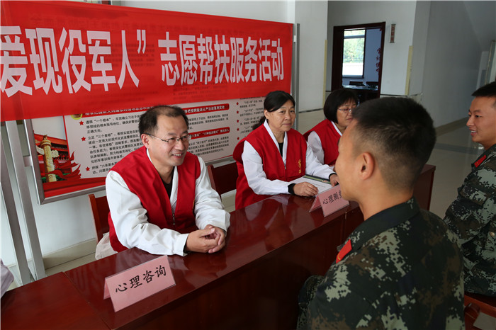 為關愛現(xiàn)役軍人的身心健康,提高基層武警戰(zhàn)士的心理服務能力,結合與武警濱州支隊醫(yī)療幫扶協(xié)議和我院文明單位創(chuàng)建活動要求,10月21日上午到武警濱州市支隊開展了“呵護心靈,關愛現(xiàn)役軍人”志愿幫扶服務活動。