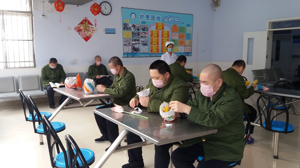 封院的第十二天,在優(yōu)撫醫(yī)院的病房里,為了進(jìn)一步增加病房的娛樂(lè)氛圍,提高患者的體質(zhì),豐富患者的精神生活。幾位患有精神疾病的退役軍人,帶領(lǐng)大家在病區(qū)餐廳開(kāi)展形式多樣的文體活動(dòng)。