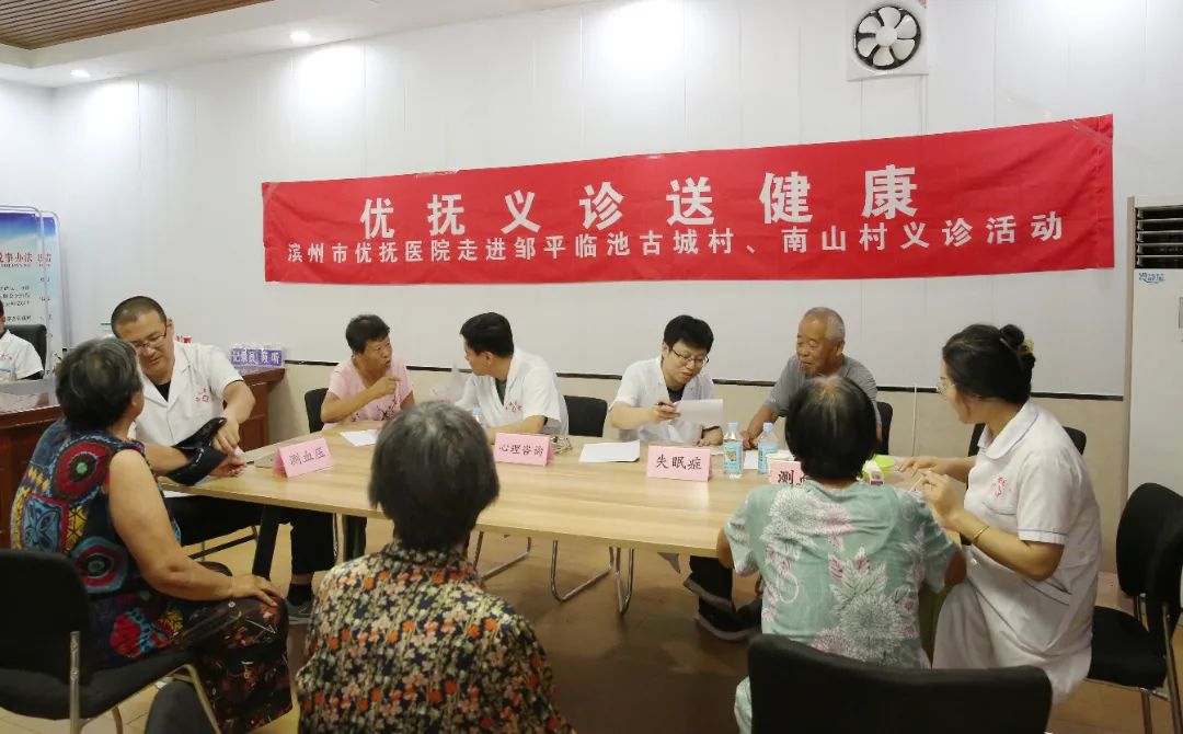7月12日上午,濱州市優(yōu)撫醫(yī)院組織醫(yī)護(hù)人員走進(jìn)鄒平市臨池鎮(zhèn)南山村、古城村,為當(dāng)?shù)厝罕姾蛢?yōu)撫對(duì)象開(kāi)展“優(yōu)撫義診送健康”活動(dòng),將貼心醫(yī)療服務(wù)送到群眾家門口。濱州市優(yōu)撫醫(yī)院黨總支書記李學(xué)軍、副院長(zhǎng)房崇村參加活動(dòng)。