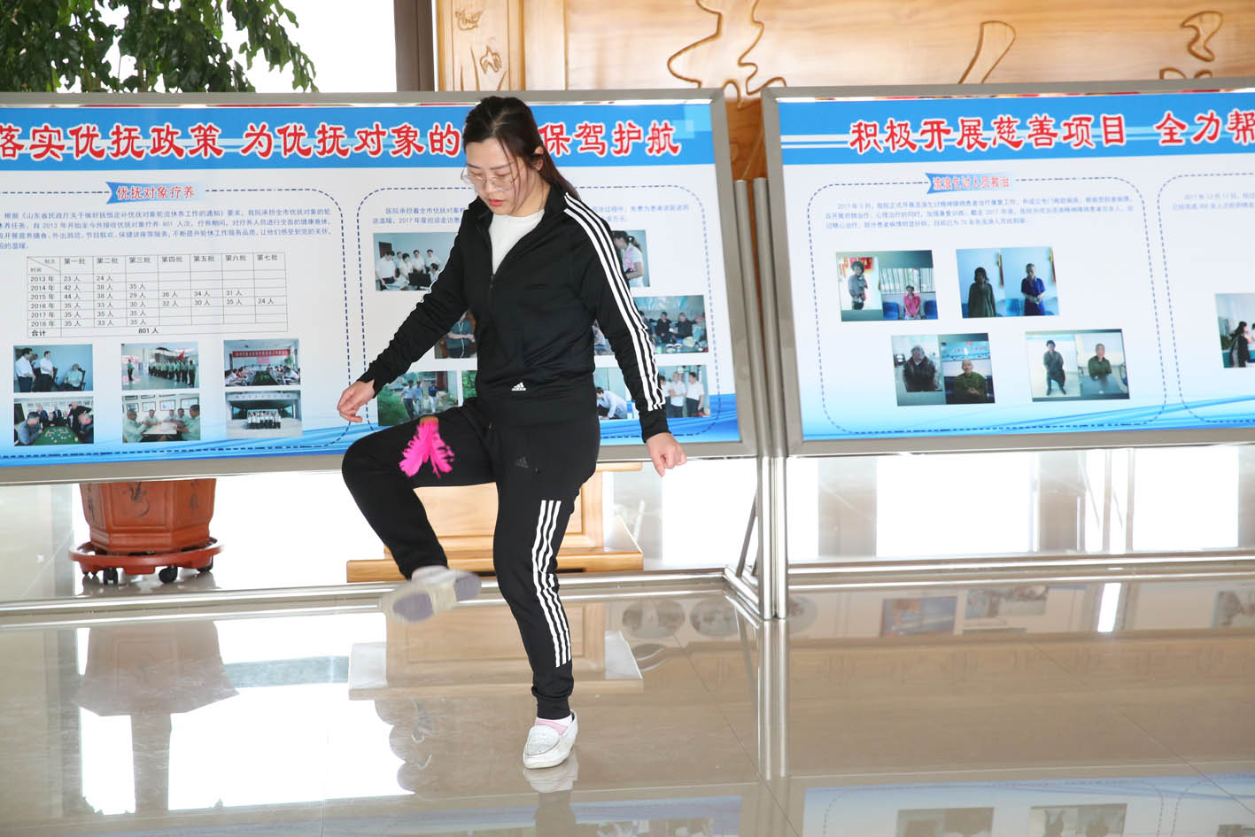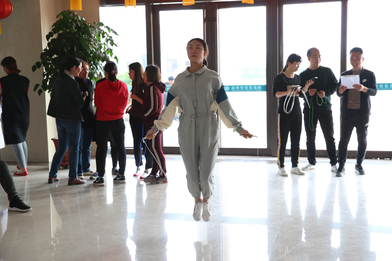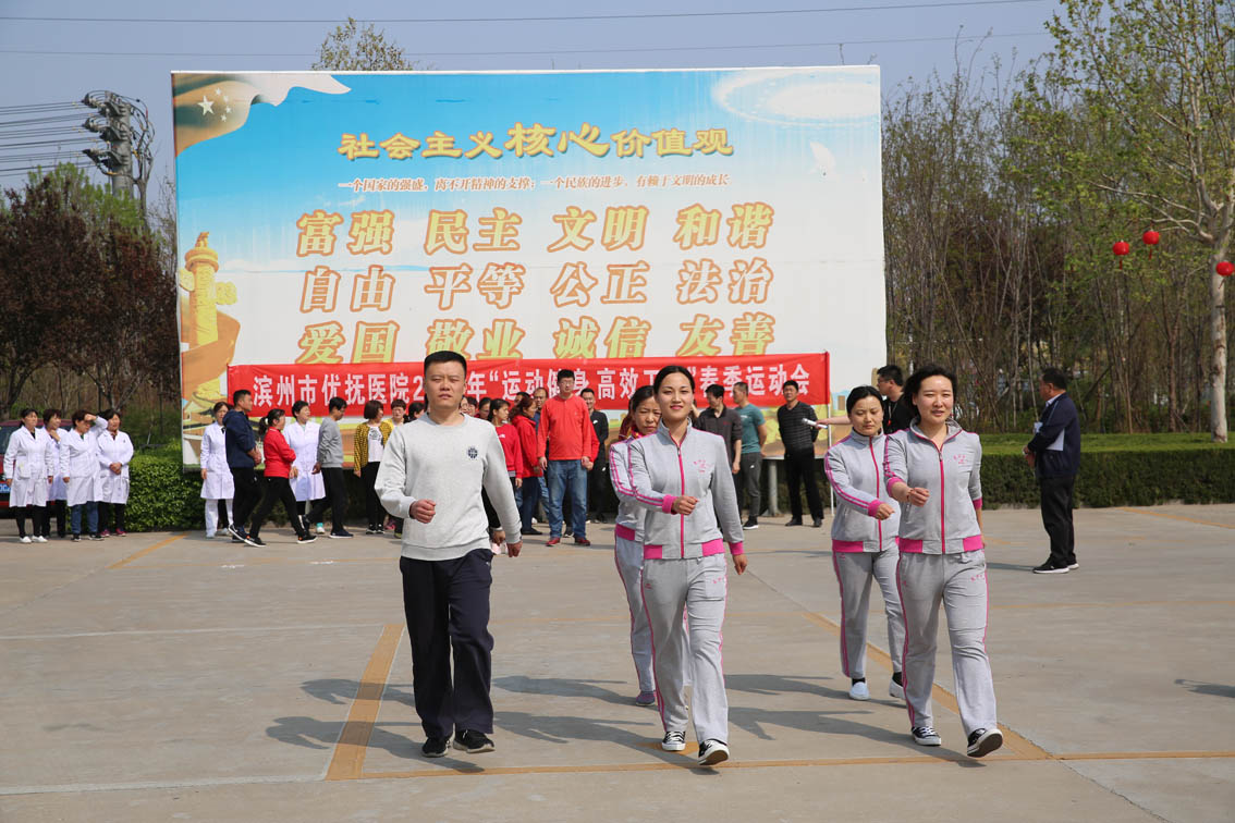 本次運動會以突出趣味競技為主題,活動有踢毽子、小跳繩、擲沙包、簡易保齡球4個項目。入場式采用了別開生面的科室方陣表演形式,成為開幕式上的最大亮點,各科室參賽隊員邁著矯健的步伐,動作整齊,英姿颯爽,以充滿創(chuàng)意的表演形式,展現(xiàn)了優(yōu)撫醫(yī)院人健康快樂、斗志昂揚的精神面貌,贏得了全場觀眾陣陣熱烈喝彩。