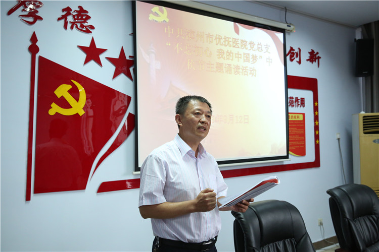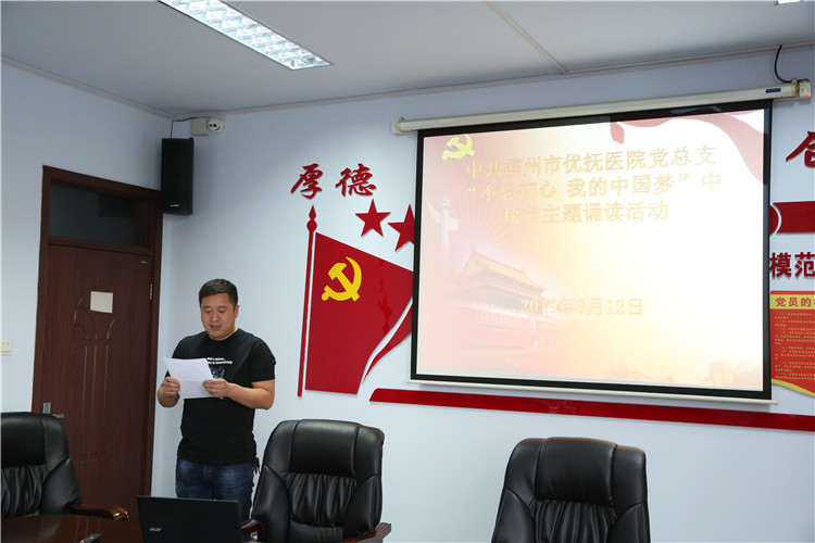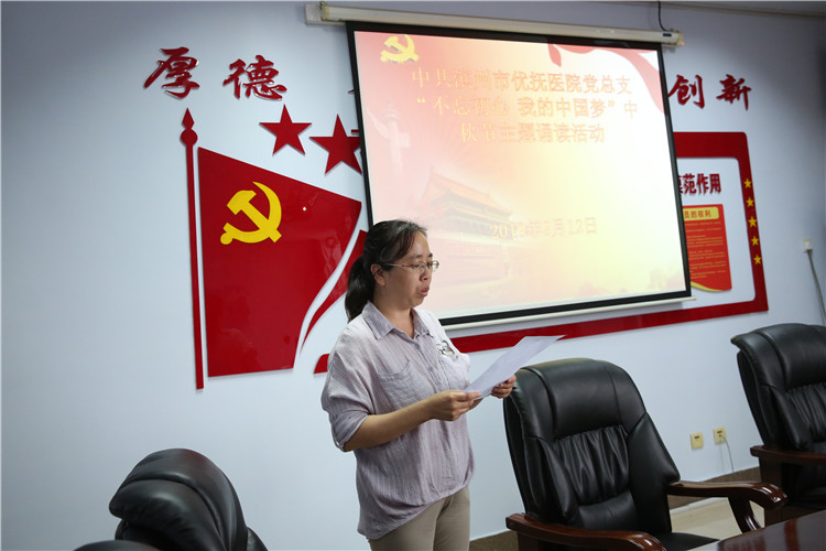 活動(dòng)中,黨員們聲情并茂地朗誦了《高山流水》、《水調(diào)歌頭·明月幾時(shí)有》、《關(guān)山月》等古今廣為流傳的中秋經(jīng)典。精彩的誦讀博得現(xiàn)場(chǎng)陣陣掌聲,讓與會(huì)黨員受到了一次中華優(yōu)秀傳統(tǒng)文化的熏陶和洗禮。最后,院長牛希國同志現(xiàn)場(chǎng)賦《不忘初心,我的事業(yè)夢(mèng)》,用真摯的感情抒發(fā)了對(duì)團(tuán)圓和諧的贊美,對(duì)新中國成立70周年的祝福,對(duì)我院精神??坪宛B(yǎng)老事業(yè)齊頭并進(jìn)同發(fā)展的決心,引起了大家的強(qiáng)烈共鳴。