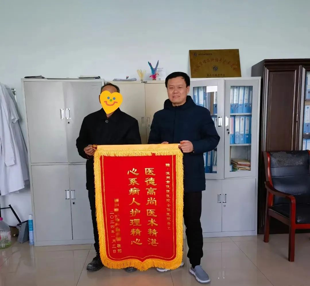 1月26日,濱州市優(yōu)撫醫(yī)院收到了一份特殊的“禮物”。三年前曾在我院住院治療的患者韓某某,將一面印有“醫(yī)德高尚醫(yī)術(shù)精湛、心系病人護(hù)理精心”的錦旗送到了醫(yī)護(hù)人員手中,感謝他們的精心治療、細(xì)心護(hù)理以及隨訪指導(dǎo)。