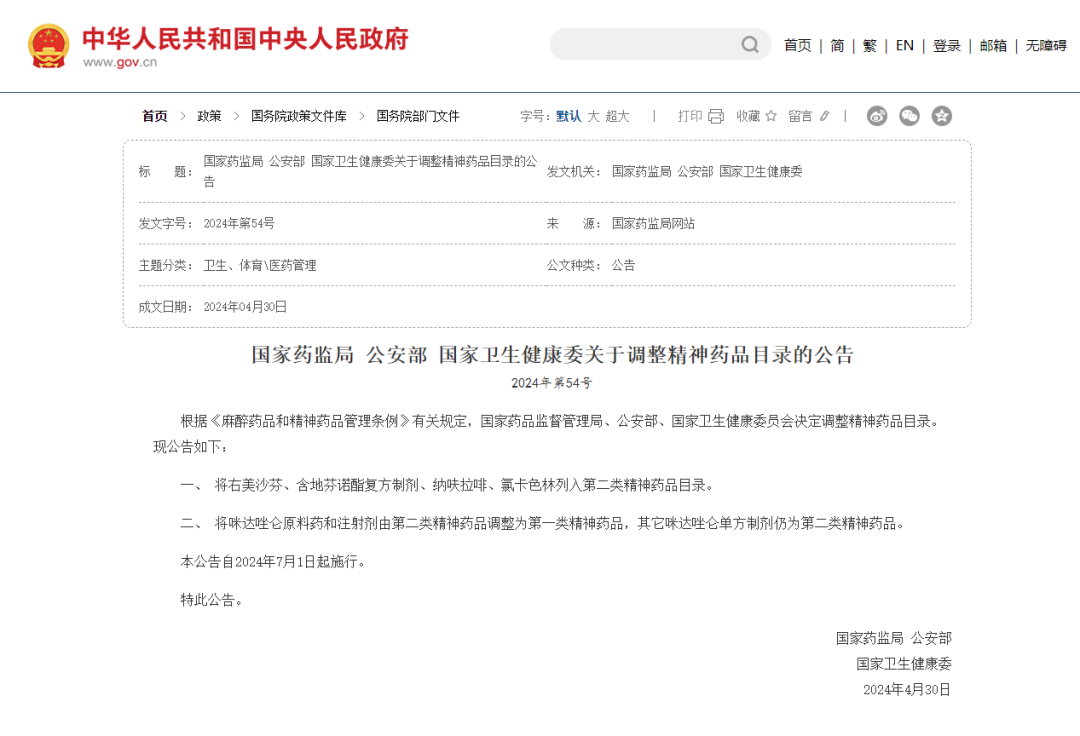 我國對精二類藥品實行嚴格的目錄管理,常見的如艾司唑侖、阿普唑侖、地西泮、氯硝西泮、佐匹克隆、右佐匹克隆、氨酚氫可酮片等都在目錄之中。由于目錄會根據藥品安全性評估等因素動態(tài)調整,大家可在國家藥品監(jiān)督管理局網站查看官方發(fā)布的調整精神藥品目錄的公告(國家藥監(jiān)局 公安部 國家衛(wèi)生健康委關于調整精神藥品目錄的公告(2024 年第 54 號),獲取最新的第二類精神藥品目錄。