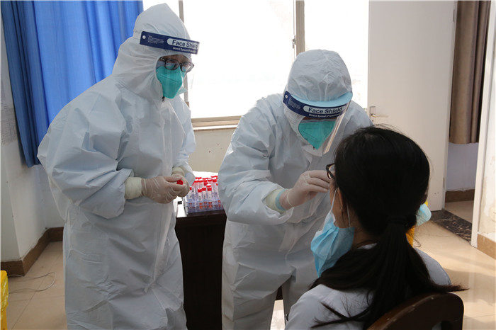 按照疫情處置工作領(lǐng)導(dǎo)小組第220 號文件精神,切實做好防控一線和特殊集中場所工作人員的核酸檢測工作,保護(hù)工作人員的身體健康,落實“早發(fā)現(xiàn)、早診斷、早隔離、早治療”的防控要求,杜絕聚集性疫情發(fā)生,3月2日上午,由市疾控中心4名專業(yè)人員和我院9名醫(yī)護(hù)人員組成的小分隊,對我院封閉管理期間的職工進(jìn)行核酸檢測。