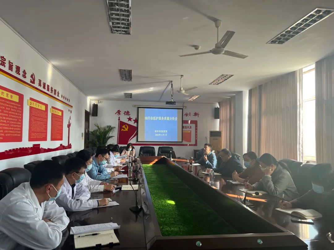11月1日,濱州市優(yōu)撫醫(yī)院召開10月份醫(yī)護服務質量分析會,進一步強化醫(yī)療質量與安全管理,規(guī)范醫(yī)療服務行為,保障醫(yī)療安全。院領導班子,病區(qū)及相關科室負責人參加會議。