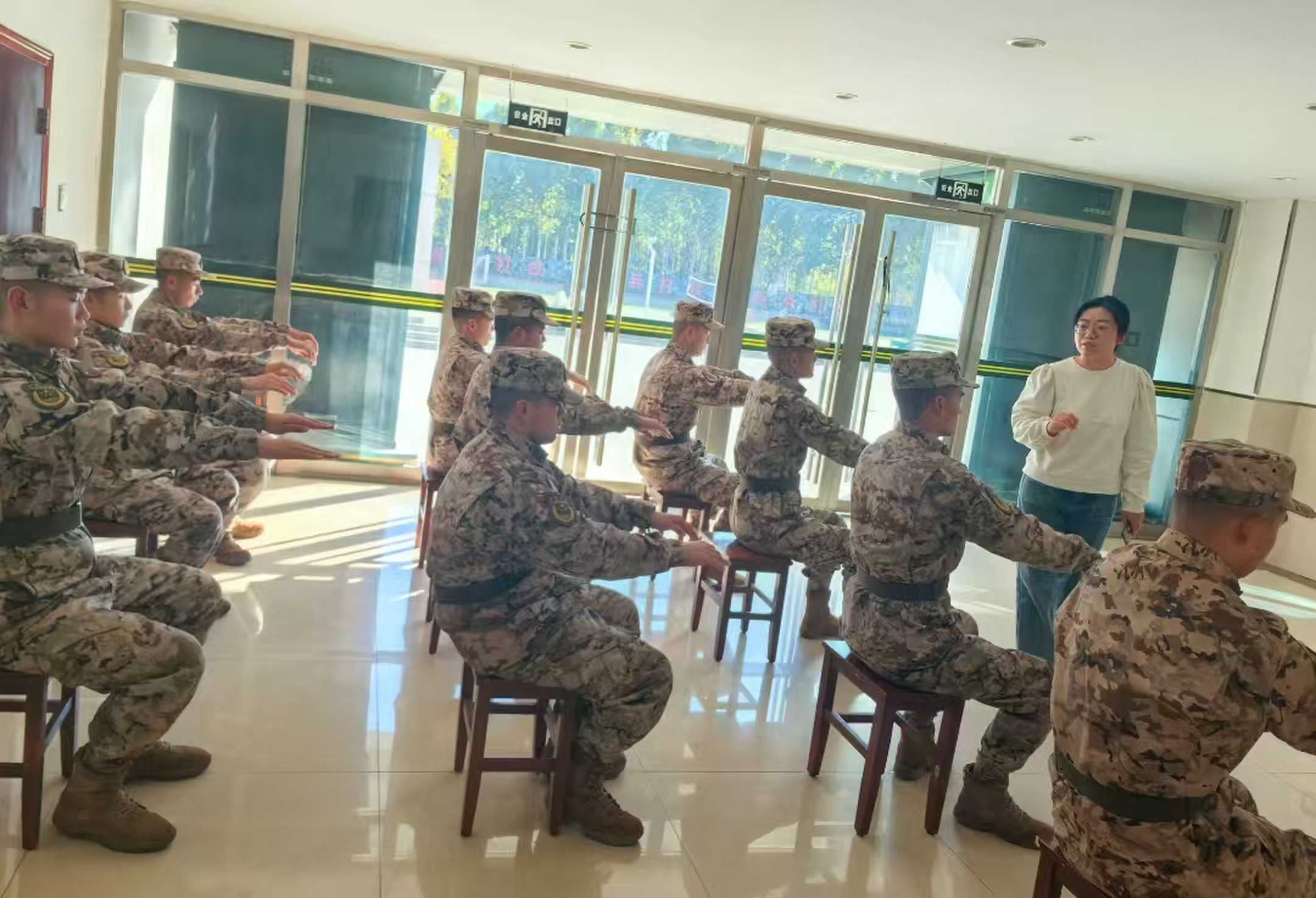 活動中,來自我院的心理醫(yī)師結合部隊實際,采用通俗易懂的語言和生動的案例,深入淺出地講解了情緒管理、壓力釋放、團隊協(xié)作等心理健康知識,通過一系列精心設計的課程和互動游戲,為官兵們送上了一份內容豐富的“心理盛宴”,不僅讓他們在輕松愉快的氛圍中學習到了實用的心理減壓技巧,同時在參與體驗中敞開心扉、釋放壓力,增強彼此之間的信任和協(xié)作能力。