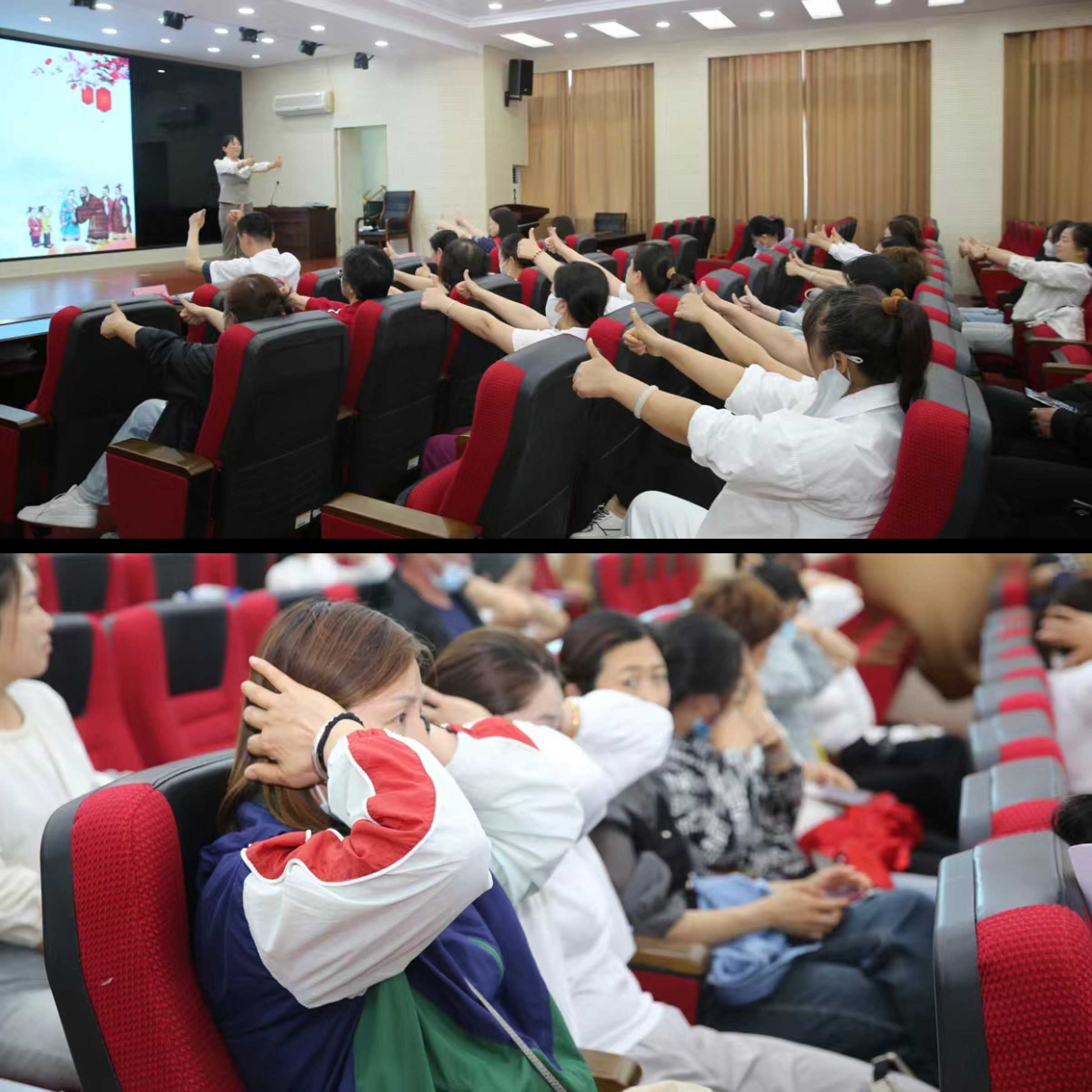 期間,心理治療師于維芳還帶領大家一起進行了“鳴天鼓”中醫(yī)放松訓練,并教授了調節(jié)情緒的技巧方法。講座結束后,志愿者為現場的群眾發(fā)放了家庭關系、睡眠障礙、經顱磁治療等內容豐富、形式多樣的宣教資料,并從心理學的角度出發(fā),為社區(qū)群眾進行了“一對一”家庭關系指導。